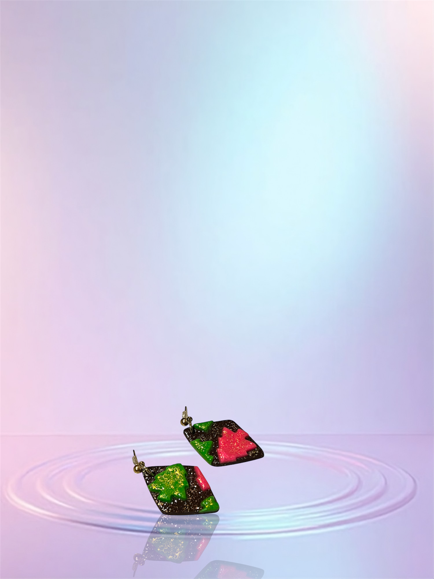 Introducing our handmade Glimmer Gingerbread Dangles! These dainty earrings feature a playful gingerbread design with glimmering details. The gold finished hypoallergenic ball studs make them perfect for those with sensitive ears. Add some holiday cheer to your outfit with these sparkly dangles!