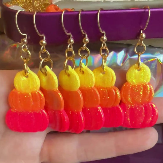 Add some sparkle to your fall wardrobe with these Glitter Gourds! These playful pumpkin earrings feature a three stack design and are finished with a glittery touch. Perfect for any autumn outfit, these earrings are sure to add a fun and unique touch to your look.