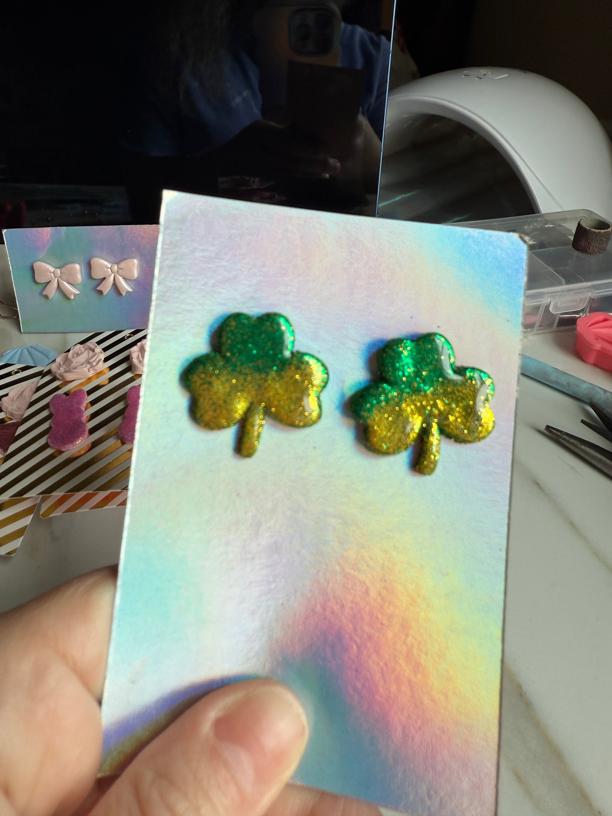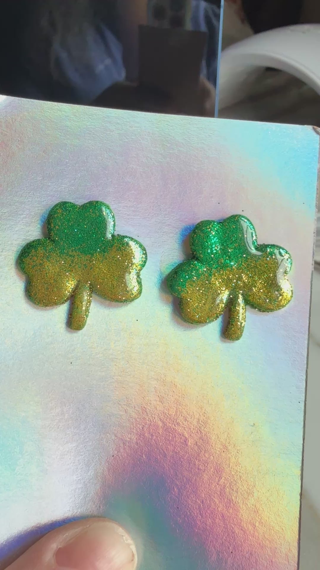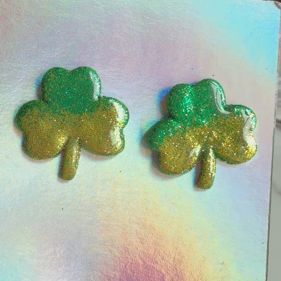 Elevate your look with our Gold and Green Shamrock Stud Earrings. Crafted with a beautiful shamrock design in vibrant green, these earrings are perfect for adding a touch of charm to any outfit. Made with high-quality materials, these studs are sure to make a statement and bring you luck.