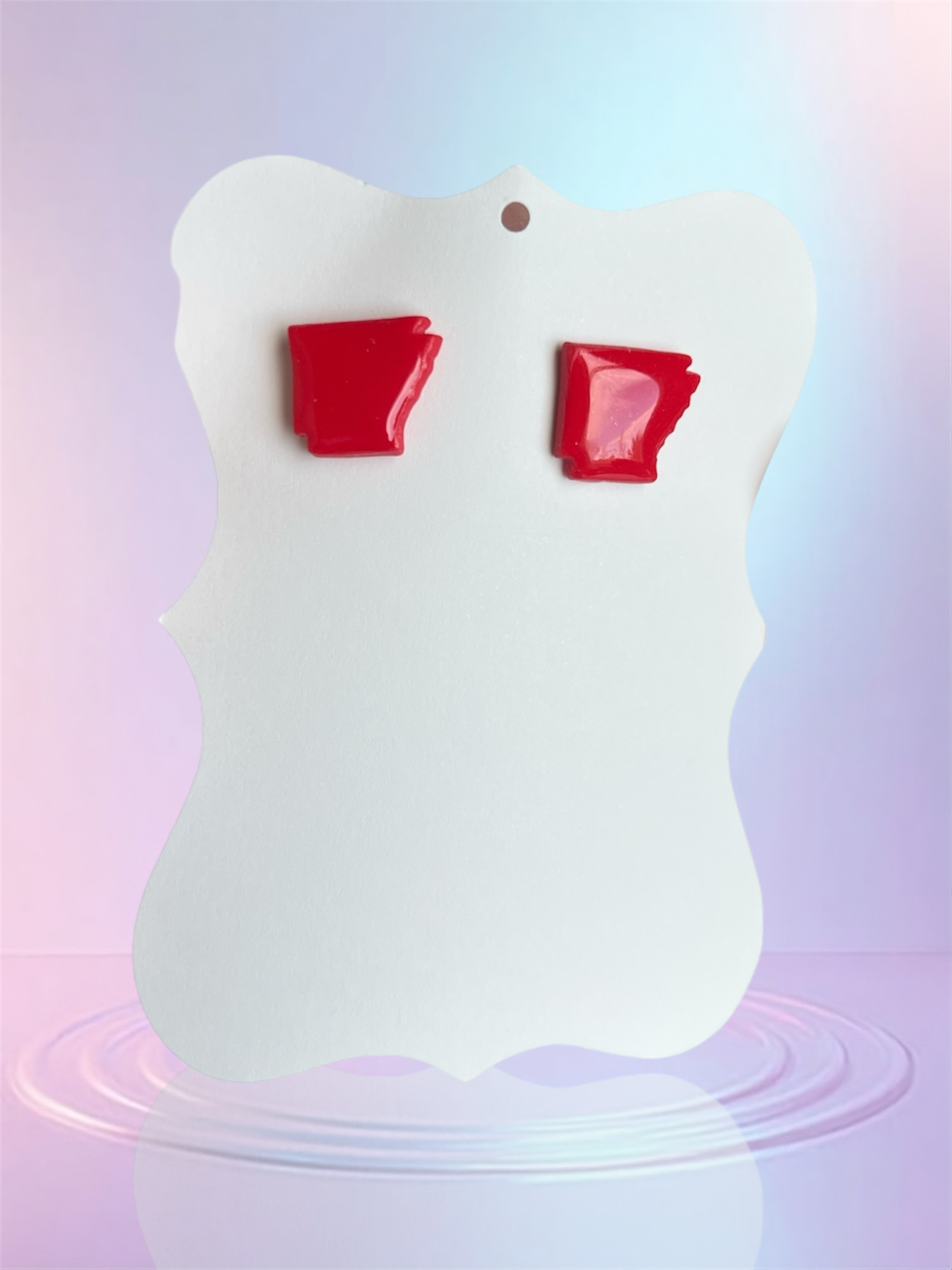 Get ready to show off your playful side with our Red Arkansas Studs! Handmade from hypoallergenic lightweight gold posts and shaped like the state itself, these clay polymer earrings are the perfect way to add a pop of color and quirkiness to any outfit. (Plus, they won't weigh you down!)