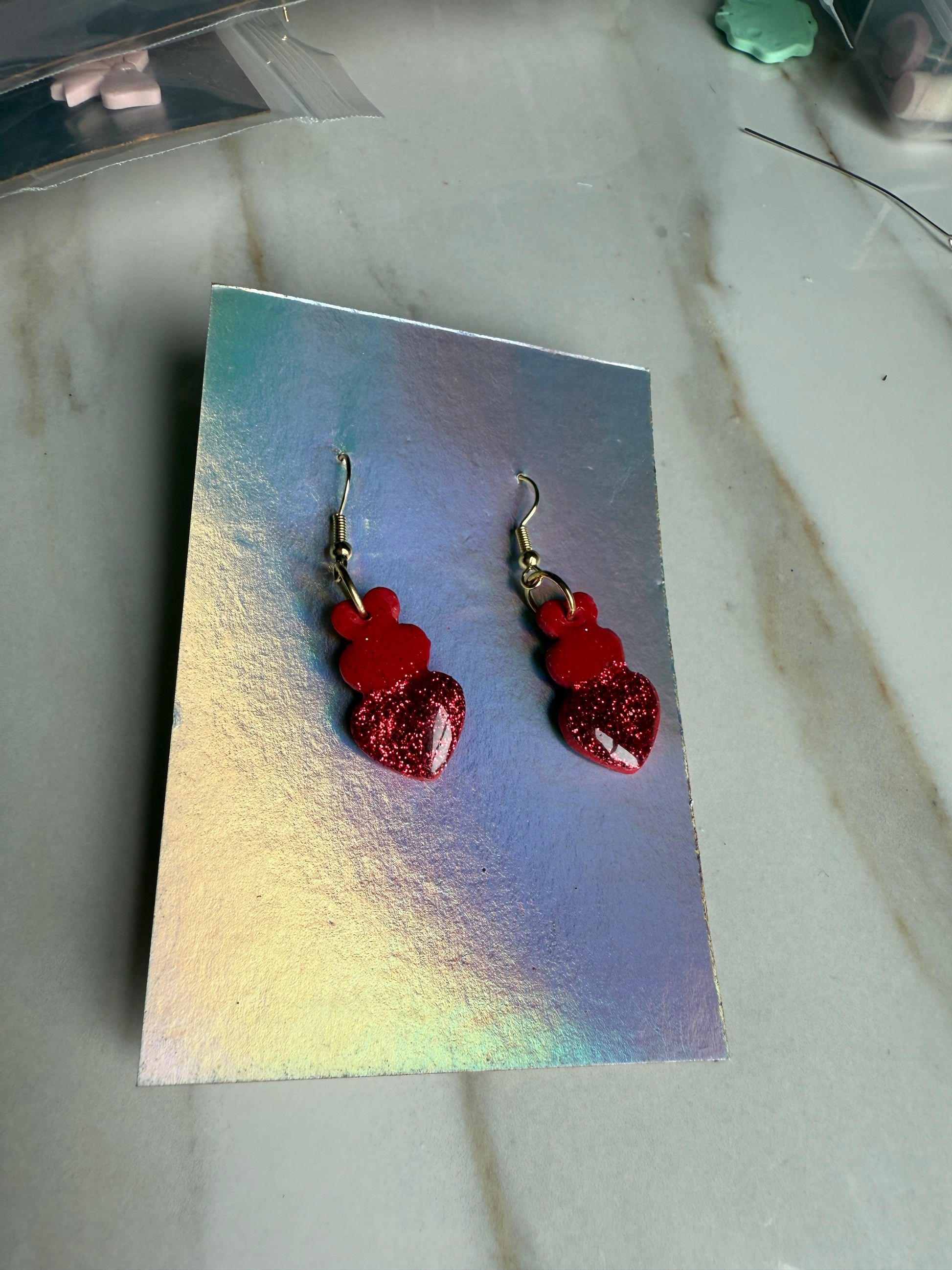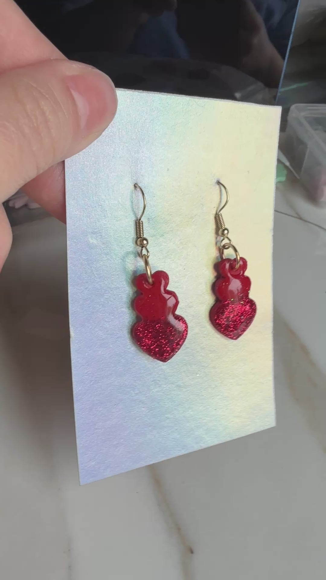 Add a sparkle to your outfit with our Red Heart Stack Dangles. These glittery earrings feature a stacked design of red hearts that will catch everyone's eye. The dangle style adds movement and fun to your look. Perfect for any occasion, these earrings are sure to make you stand out in style.
