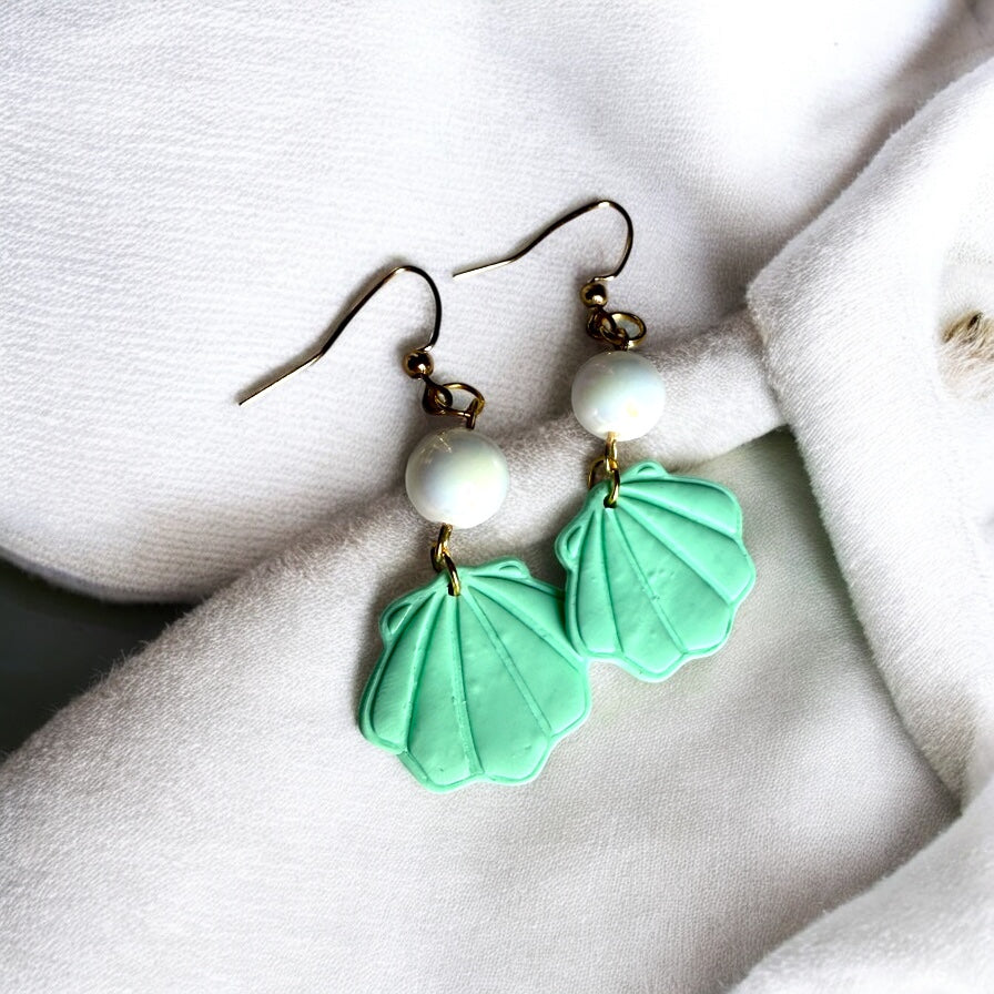 Transform yourself into a mermaid with our stunning Sea Foam Green Pearl and Shell Dangle earrings. The beautiful sea ocean green pearl will add a touch of enchantment to any outfit, making you feel like you're walking on the ocean floor. Embrace your inner ocean goddess today!