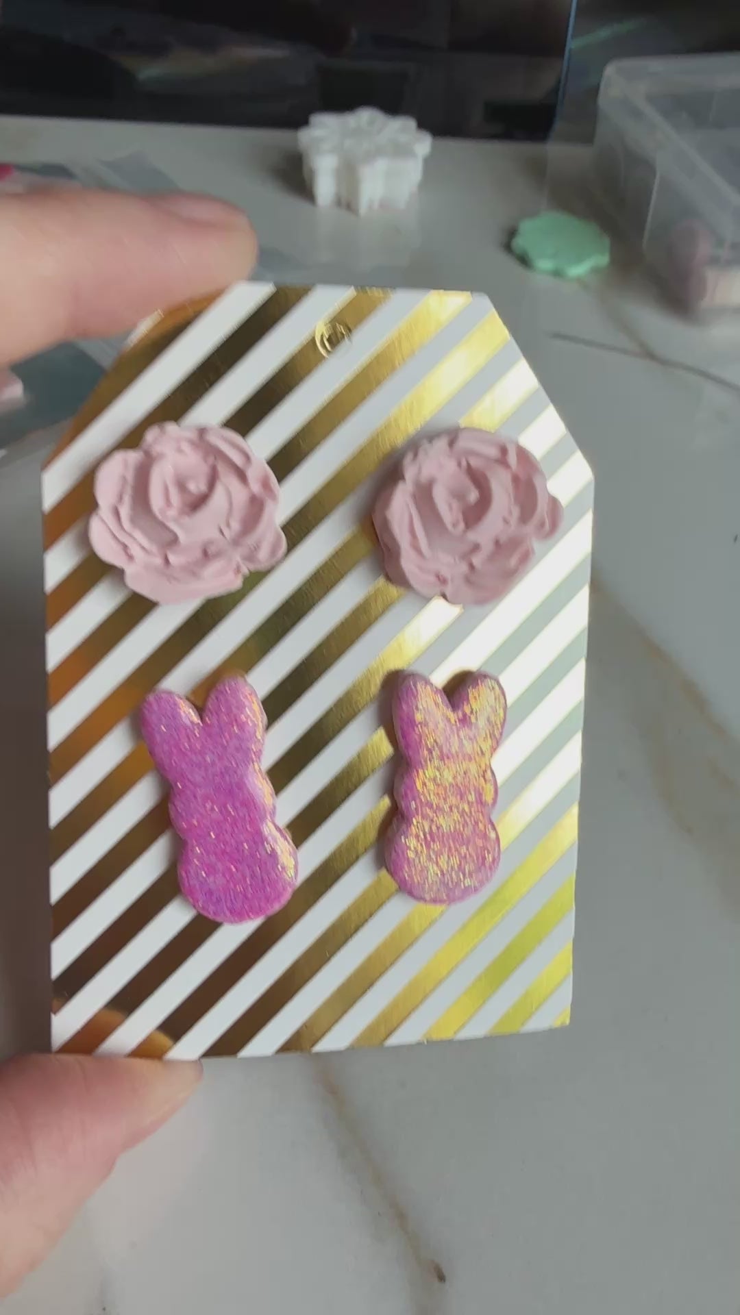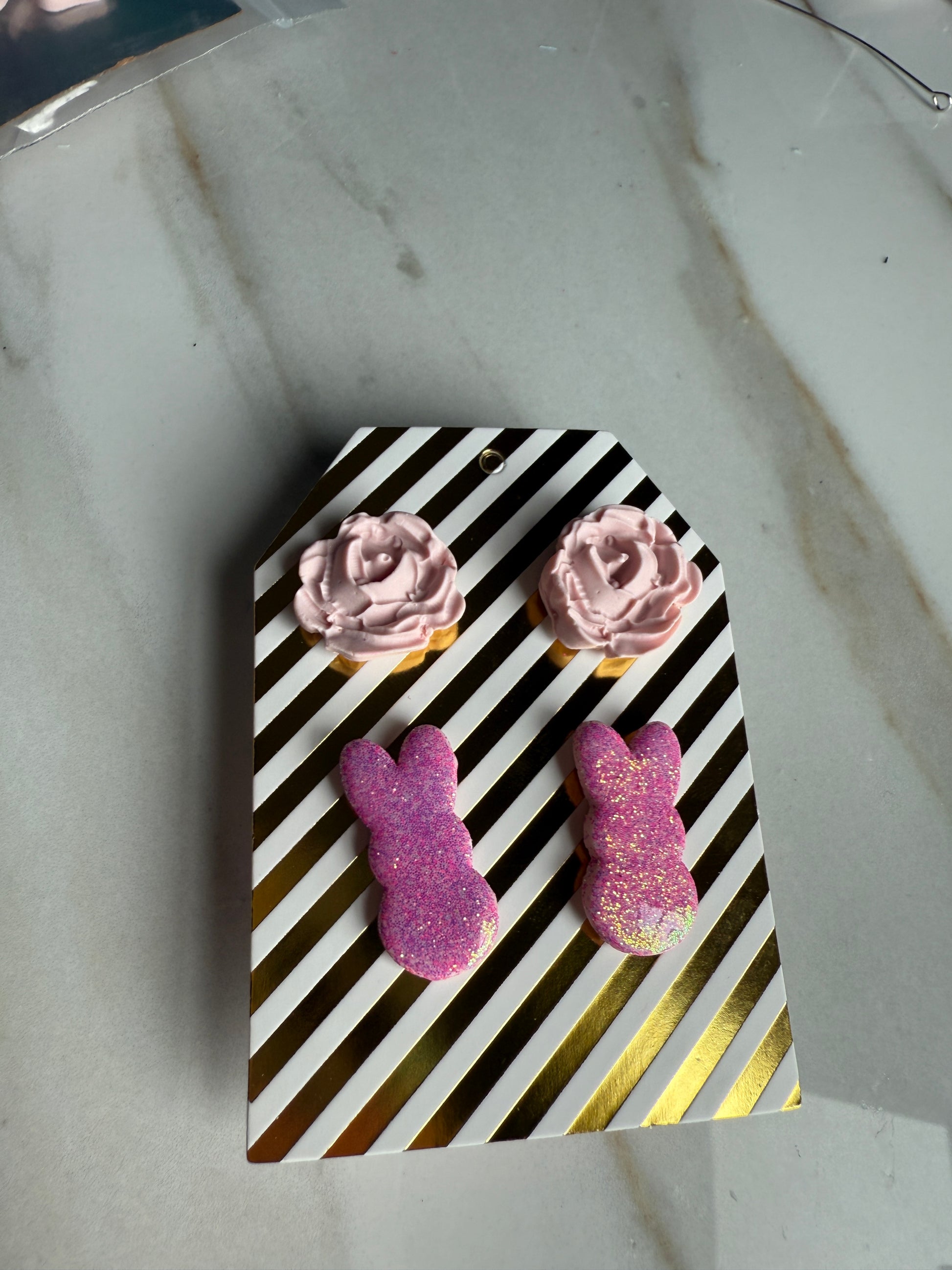Sparkly Marshmallow Bunny Studs and Rose Studs