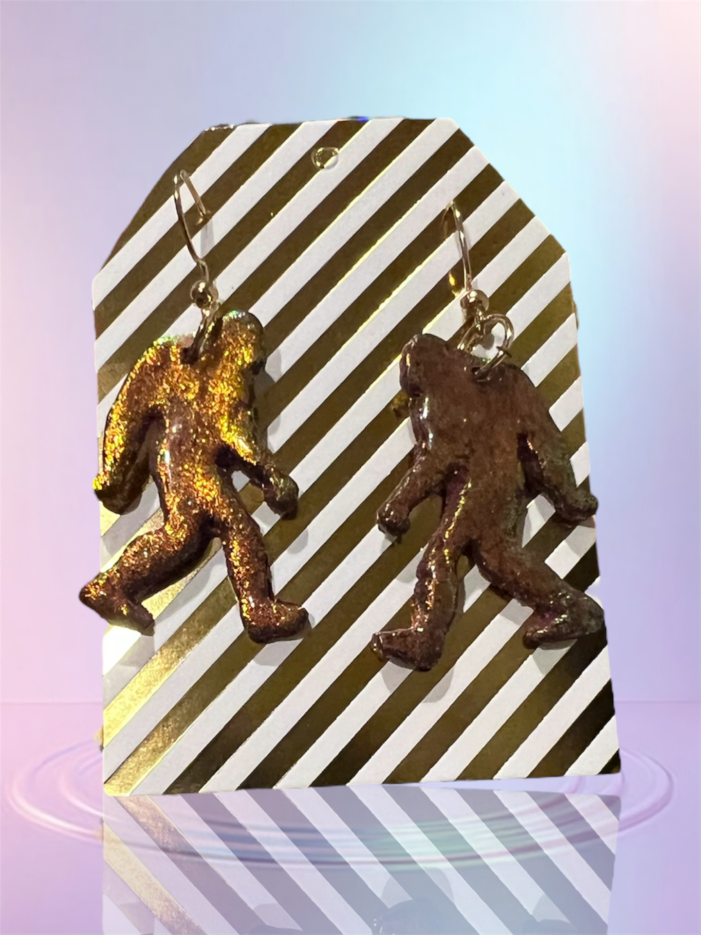 Introducing Sparkly Sassquatch Dangles, handmade with polymer clay and featuring gold-finished, lightweight hypoallergenic hooks. These one-of-a-kind earrings are perfect for adding a touch of whimsy and fun to any outfit. Go wild with these sassy and sparkly dangles!