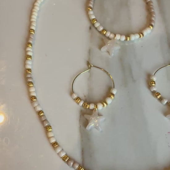 Get ready to shine with the "You Wish" 🙄 Upon a Star Set! This playful set includes a seed bead necklace, bracelet, and earrings that are lightweight and hypoallergenic for comfortable wear. Perfect for adding some summer vibes to any outfit and making all your wishes come true 🌟